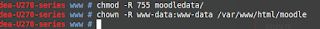 - Selanjutnya kita beri hak akses dan hak milik pada folder moodle yang ada pada /var/www/ ,dengan perintah :